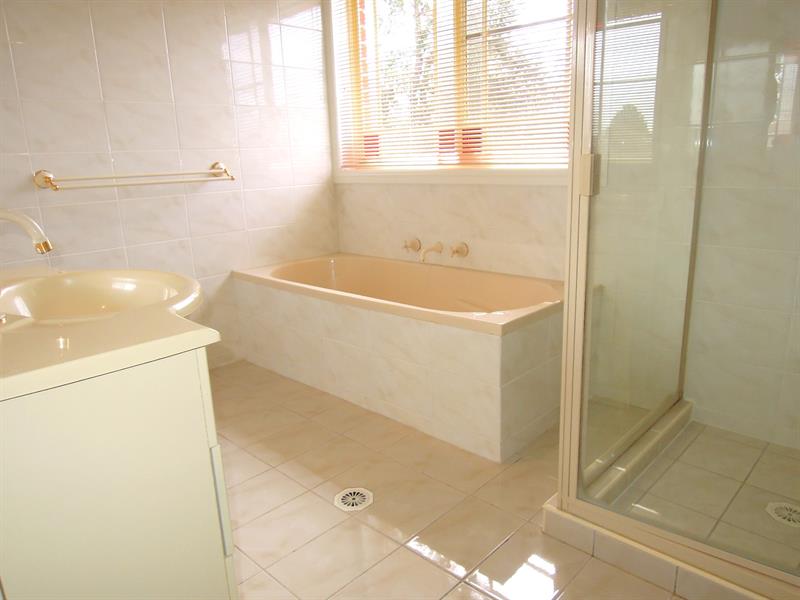 - Main bathroom with separate bath and shower